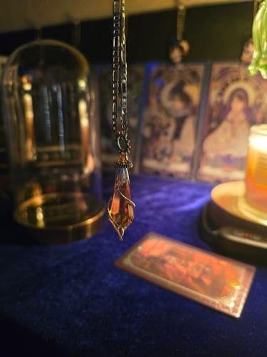 Whether you're a devoted fan of the series, a collector of mystical artifacts, or someone drawn to the art of divination, this pendulum offers both aesthetic beauty and spiritual significance. The warm golden hue of the topaz crystal catches light beautifully, making it a stunning display piece while maintaining its functional properties for those interested in pendulum work."Above the gray fog, Klein gently swayed the topaz pendulum, seeking answers in the ethereal realm..."